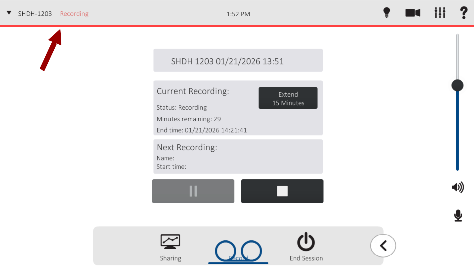 - To be sure that your recording is working properly, confirm that you can see the red recording line: