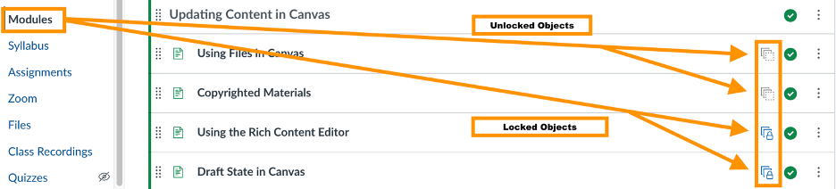 Not all attributes of course objects can be locked. For most course sites, the IDEA Courseware Team recommends locking content and points, but not due dates or availability dates.