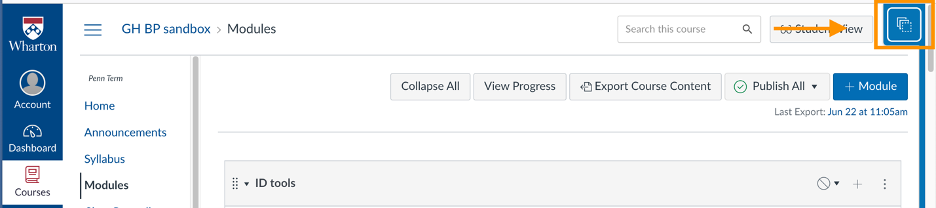 If your site uses any of the LTIs (Canvas-integrated third-party tools) that are supported by the Wharton Courseware team (e.g., FeedbackFruits or Harmonize), please note they will only sync to child sites once and should be completely configured and proofread before they are synced. If you will be using an integrated tool with your Blueprint site, please contact courseware@wharton.upenn.edu to request information specific to how the tool interacts with Blueprint Canvas sites.