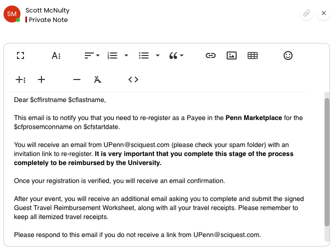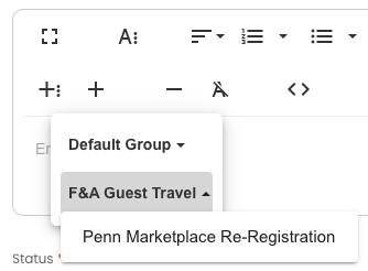 Click on the text you want, in this case Penn Marketplace Re-Registration, and the text appears in the text editor.